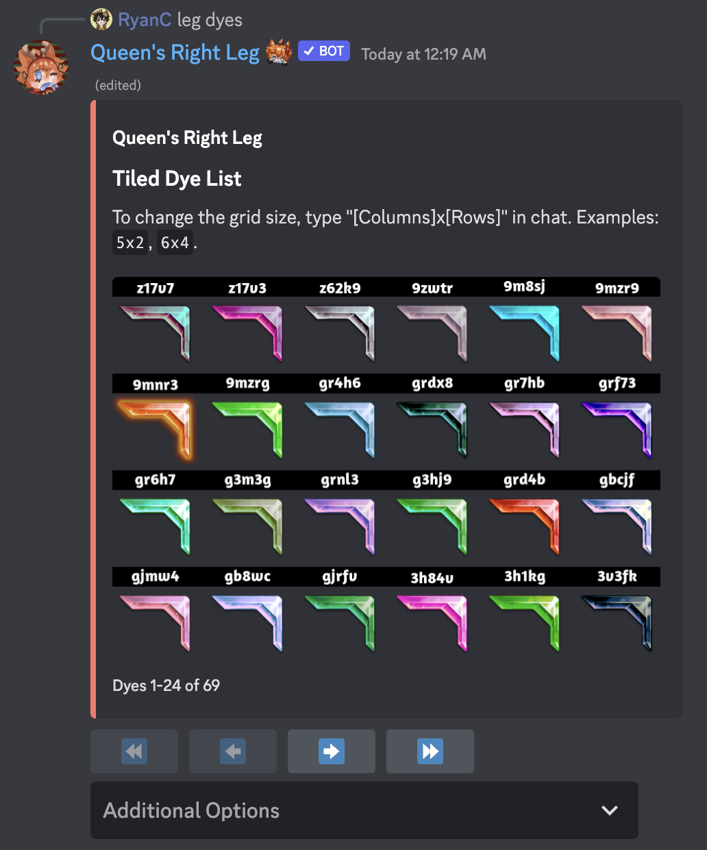 Aliases: "dyelist", "dyeviewer", "dyetile", "tiledye", "tiledyes", "showdyes"
